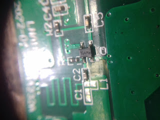 untuk mengatasi nya cukup mudah yaitu dengan melepas atau memotong jalur nya yang menyambung ke output PSU(CHARGER) tersebut. untuk letak komponen tersebut biasanya berdekatan dengan travo output PSU (CHARGER) , baik di charger hape ataupun laptop dll. komponen yang dilingkari itu condensator arus dan disampingnya ada komponen kotak kecil itu jarang bermasalah. jadi yang perlu di cabut atau yang perlu dipotong jalurnya hanya yang warna biru yang di tandai dengan lingkaran warna hitam.